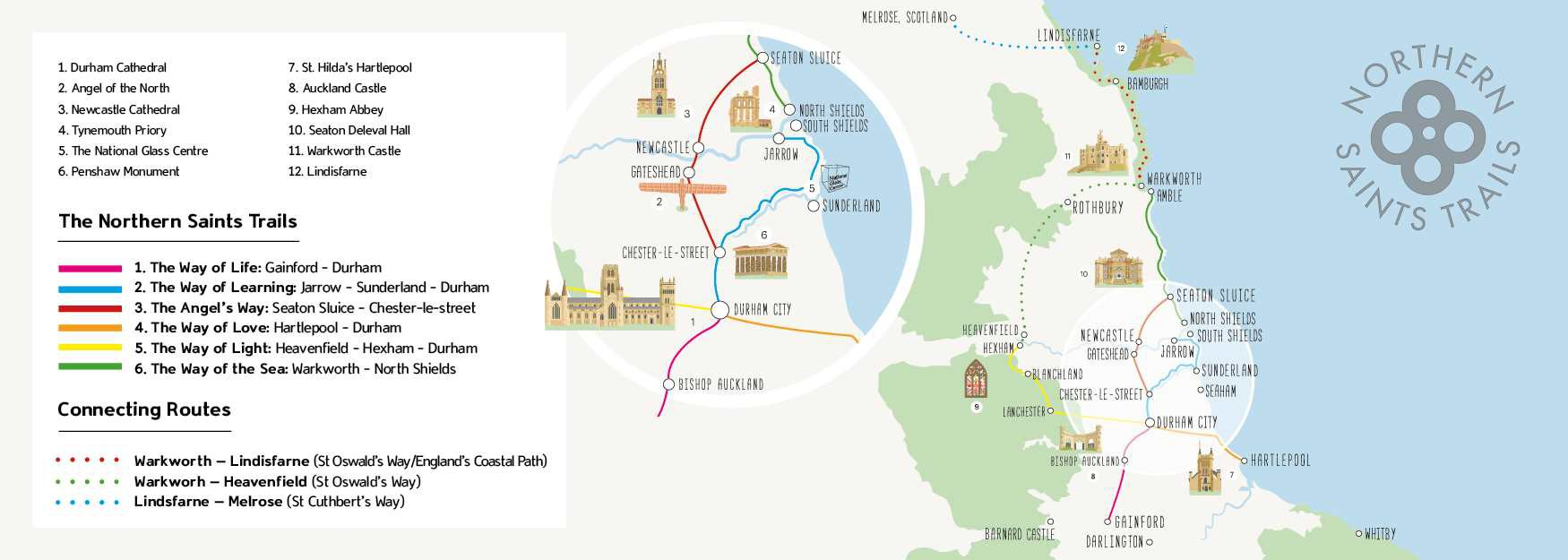 follows England’s Coastal Path, connecting with the Way of Learning at Jarrow